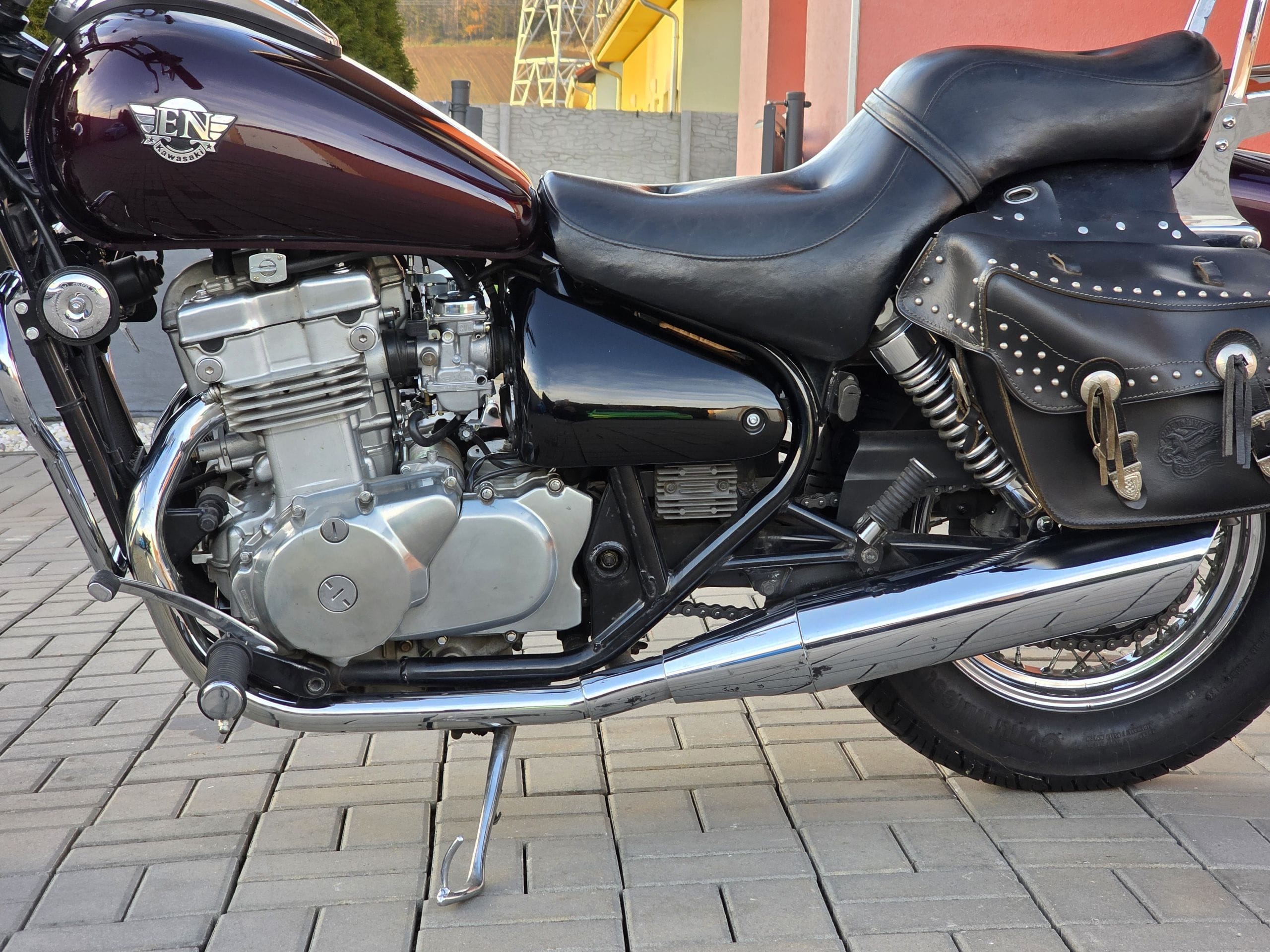 Prodám Kawasaki EN500, rok výroby 1997, najeto pouze 11.450km, výkon 34kW, objem motoru 498cm3, STK platná do 11/2029. Motorka dovezena do ČR v roce 2017 s nájezdem 8.500km. Po celou dobu v ČR jeden majitel, garážovaná. Celkově ve velice hezkém stavu, aktuálně po čištění karburátorů, výměna řetězové sady, nová baterie. Navíc doplňky jako nosič s opěrkou spolujezdce, brašny, padací rám, plexi, rolka.